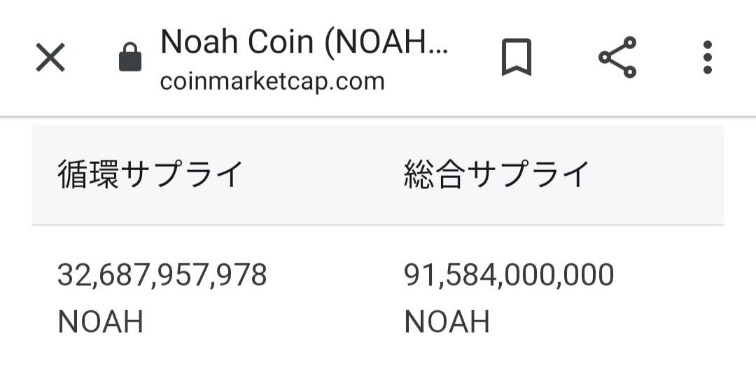 つまり、コインマーケットキャップはNOAH財団が自己申告した数字、コインゲッコーは流通枚数を独自調査した数字という事だ